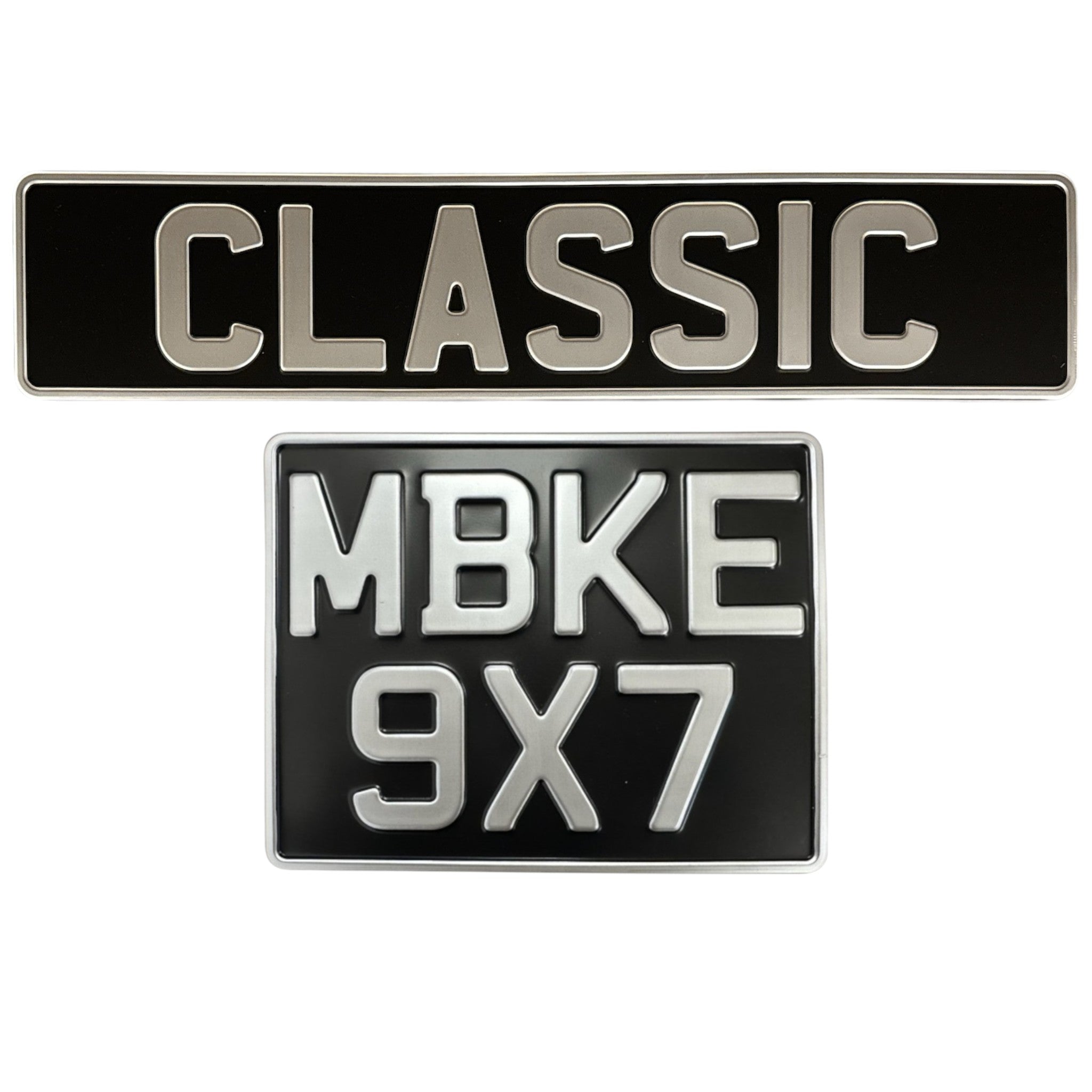 Classic Metal Pressed Number Plate - 520x111 & 9x7